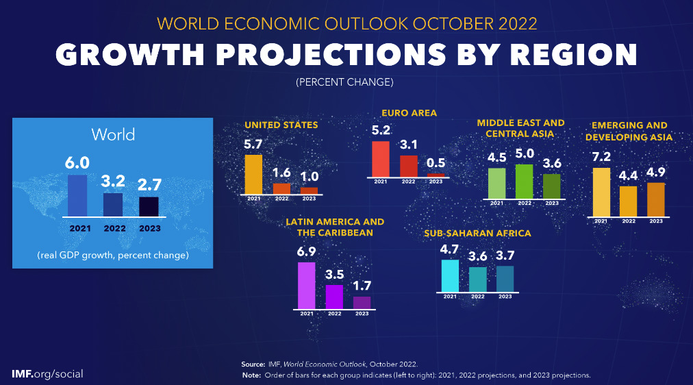 Die Gründe dafür liegen auf der Hand. „Die Inflation, die so hoch ist wie seit mehreren Jahrzehnten nicht mehr, die Verschärfung der finanziellen Bedingungen in den meisten Regionen, der Einmarsch Russlands in die Ukraine und die anhaltende COVID-19-Pandemie belasten die Aussichten erheblich“, heißt es in dem Bericht. „Das globale Wachstum wird sich voraussichtlich von 6,0 Prozent im Jahr 2021 auf 3,2 Prozent im Jahr 2022 und 2,7 Prozent im Jahr 2023 abschwächen.“