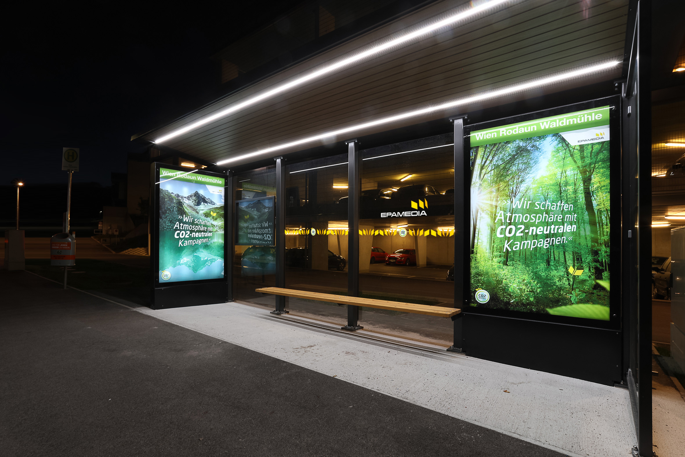 Mit der „Wartehalle der Zukunft“ in Wien-Liesing entwickelte EPAMEDIA Österreichs erste solarbetriebene Wartehalle, die reinen Öko-Strom erzeugt. Zukünftig könnten sämtliche Wartehallen mit dieser Technologie aufgerüstet werden und Kunden somit einen Beitrag zur Reduktion ihres ökologischen Fußabdrucks leisten. Den Benefit des Projekts erklärt Brigitte Ecker, CEO EPAMEDIA, wie folgt: „Mit der Wartehalle der Zukunft“ setzen wir unsere ökologische Ausrichtung konsequent fort und beweisen, dass Außenwerbung mit seinem enormen Entwicklungspotenzial für aktuelle und zukünftige Herausforderungen innovative Lösungsvorschläge bietet.“