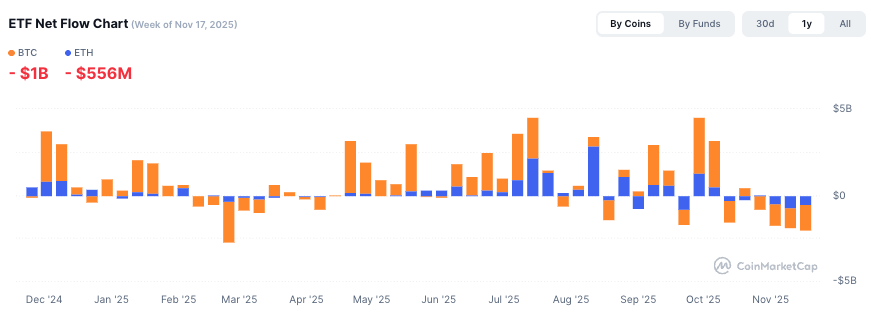 Die hohen ETF-Abflüsse spiegeln nicht nur Krypto-spezifische Sorgen wider, sondern eine breitere Portfolio-Umschichtung. Institutionelle Investoren, die 2025 beide Märkte (Tech-Aktien und Krypto) befeuerten, ziehen sich parallel zurück: Das AUM der Bitcoin-ETFs sank um 13,4% in 30 Tagen, zeitgleich mit Abflüssen aus Tech-Fonds.