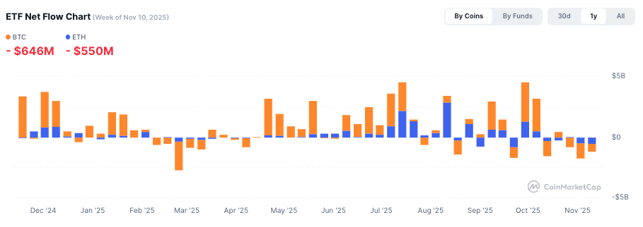 - Große Kapitalabflüsse aus Bitcoin-Spot-ETFs, die hohe Verkaufsmengen verursachen.
