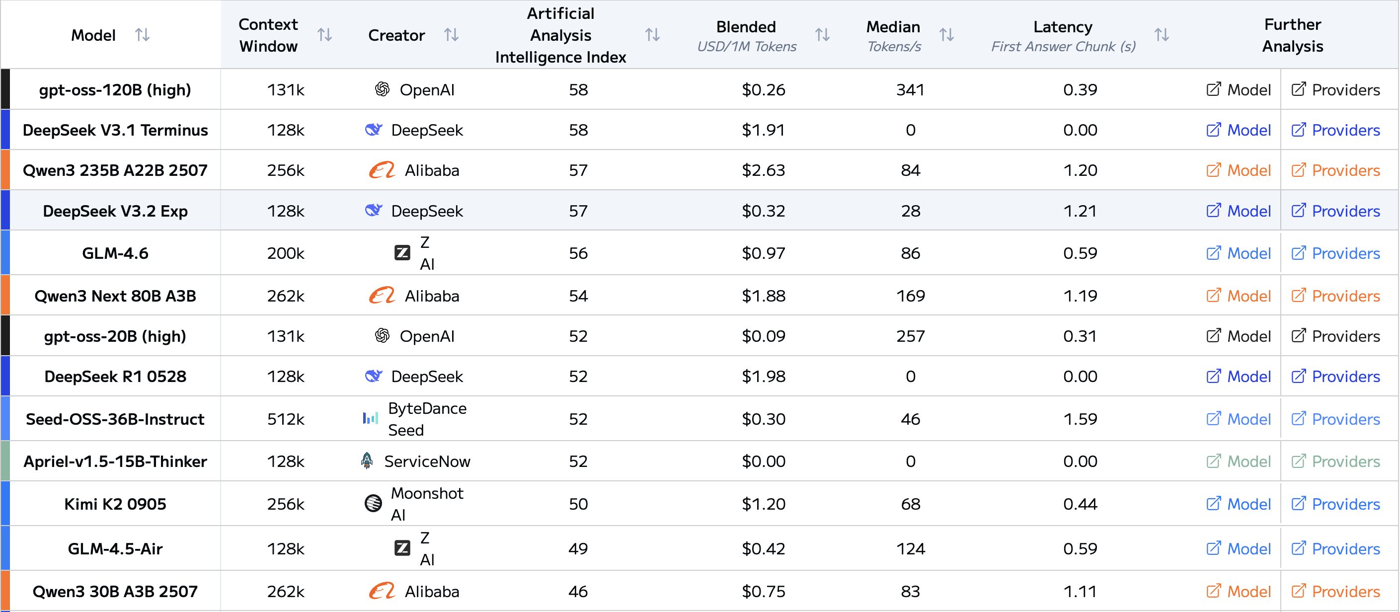 Auch ein Blick in die Charts von Artificial Analysis zeigt sehr deutlich: Open-Source-KI wird mittlerweile ganz klar von China dominiert, lediglich OpenAI kann mithalten – und hier liegt die Vermutung nahe, dass GPT-OSS-120B und sein kleiner Bruder GPT-OSS-20B lediglich veröffentlicht wurden, um auf den Druck von DeepSeek, Alibabas Qwen oder aufstrebenden Startups wie Moonshot AI (Kimi K2) und Z.AI (GLMs) eine Antwort zu haben.