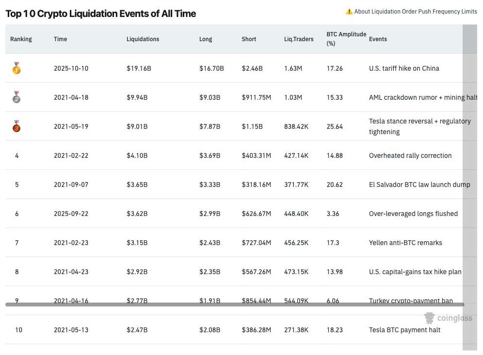 Am 10. Oktober, zeigen Daten etwa von Coinglass, wurden Long-Positionen von fast 17 Milliarden Dollar (also Börsen-Wetten auf weiter steigende Krypto-Preise) liquidiert, also aufgelöst, mit massiven Verlusten für eineinhalb Millionen Trader. Dieser Oktober-Schock setzt sich bis heute fort, weil der Markt ausgedünnt wurde und sich die Stimmung komplett drehte.