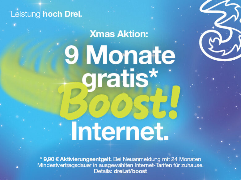 Boost ist ein innovatives Internet-Upgrade von Drei, das Kund:innen in Österreich eine optimale 5G-Verbindung garantiert. Nach Zustimmung bei der Anmeldung wird die Empfangsqualität des Routers erfasst – dabei werden ausschließlich technische Leistungsdaten und keine Inhaltsdaten gespeichert.