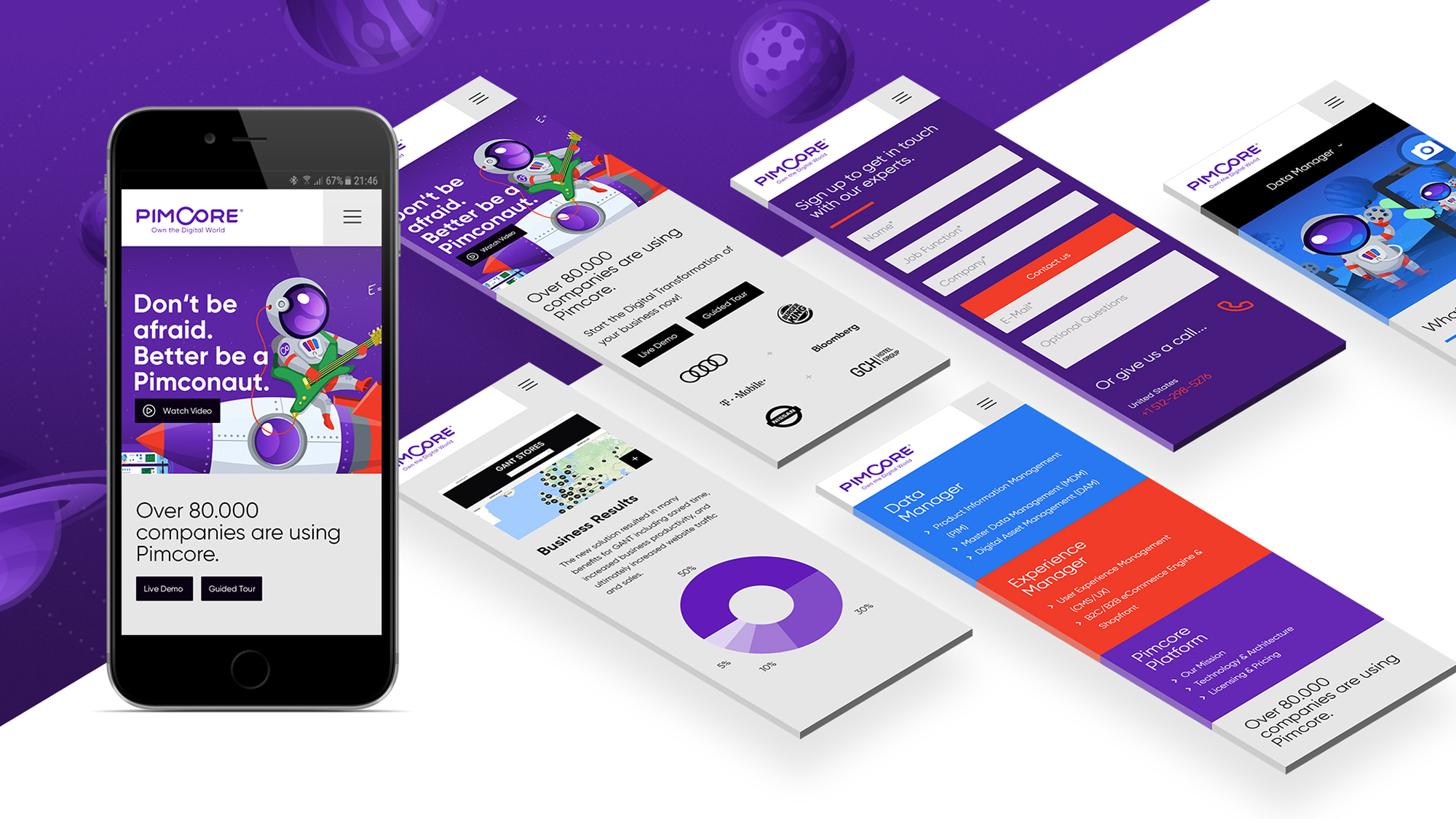 Im Zuge der neuen Markenpositionierung wurde Pimcore einem ganzheitlichen Markenprozess unterzogen, um den USP der Marke klar zu definieren und verstärkt hervorzuheben. Grundlegend für die neue Markenschaffung war eine Online-Befragung gekoppelt mit einer umfassenden Markt- und Mitbewerber-Analyse. Danach wurde die Farb-, CI- und Logo-Gestaltung Schritt für Schritt dynamisch konzipiert.