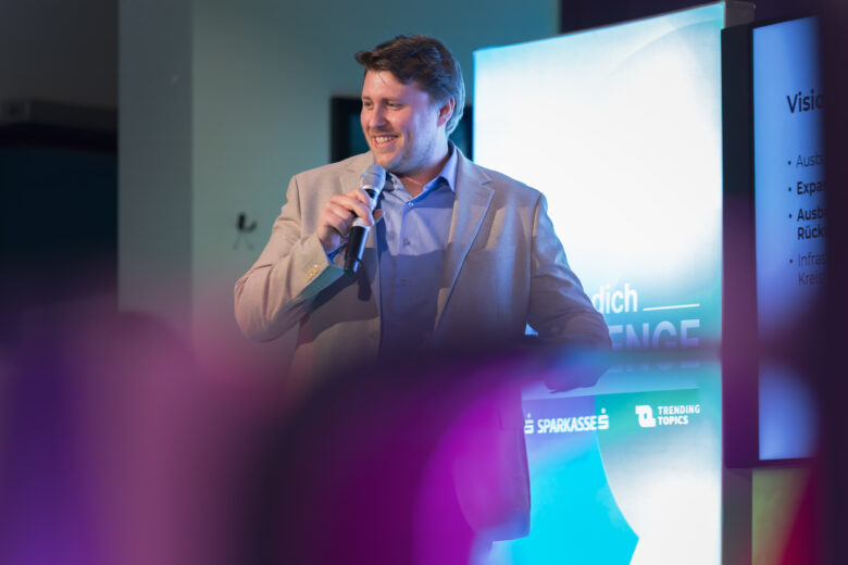 Moritz Weinhofer, Project Manager bei aws Connect Industry-Startup.Net, hielt die Keynote des Abends. Er gab wichtige Einblicke in die zahlreichen Programme der aws und betonte den Wert von Austausch und Vernetzung. Gleichzeitig stellte er die Bedeutung von Nischenbranchen im heutigen Startup-Ökosystem in den Fokus.