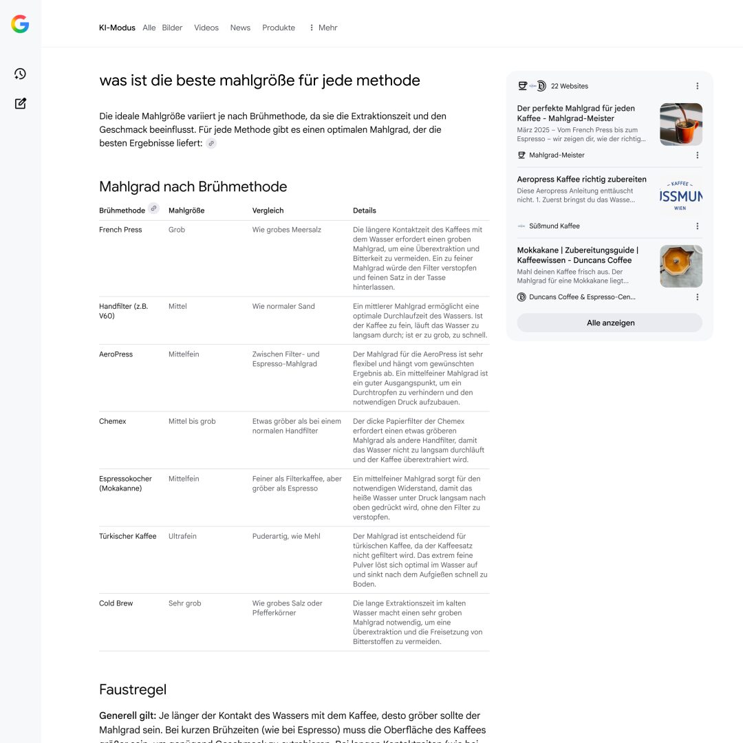 Jedenfalls: AI Mode soll Fragen beantworten können, die zuvor nicht möglich waren. Das System nutzt eine „Query Fan-out“-Technik, die komplexe Fragen in Unterthemen aufteilt und mehrere Suchanfragen gleichzeitig ausführt. „Dieser zusätzliche Schritt ermöglicht es uns, eine breitere und vielfältigere Auswahl hilfreicher Web-Inhalte anzuzeigen“, erklärte Budaraju. Die Funktion biete multimodale Fähigkeiten, sodass Nutzer auch Bilder hochladen und Fragen dazu stellen können.