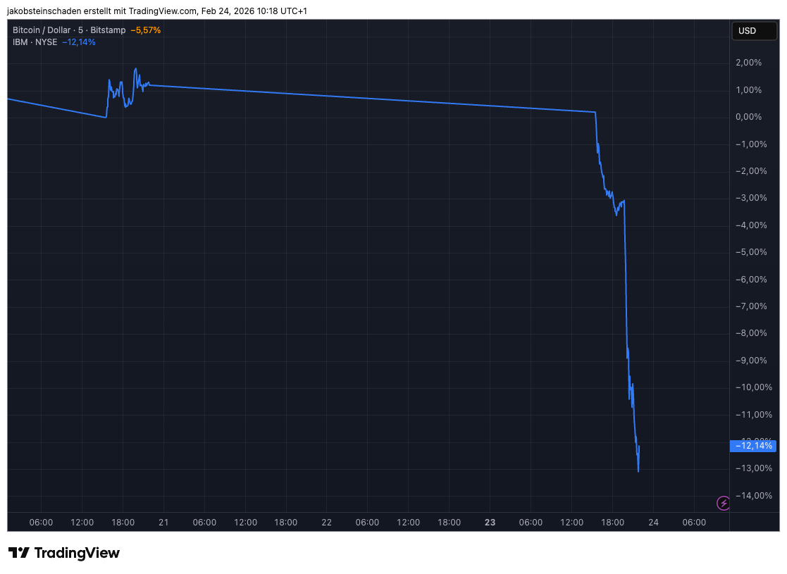 First it was SaaS stocks, then cybersecurity firms’ shares, and now “Big Blue” is in the crosshairs: IBM’s stock recorded its strongest single-day loss in over 25 years on Monday. The trigger was the announcement by AI startup Anthropic that its tool “Claude Code” could significantly simplify the modernization of COBOL systems. The stock plummeted 13.2 percent, the highest decline since October 2000. Investors fear that artificial intelligence could fundamentally change IBM’s traditional mainframe business.
