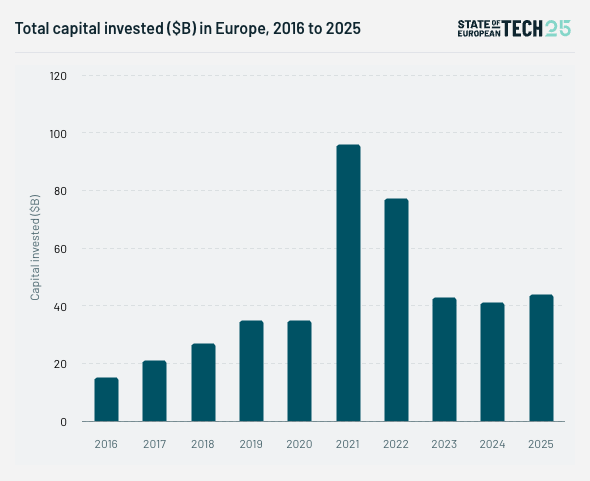 „Europa am Scheideweg“: Tech-Investments 2025 steigen leicht auf 44 Milliarden Dollar